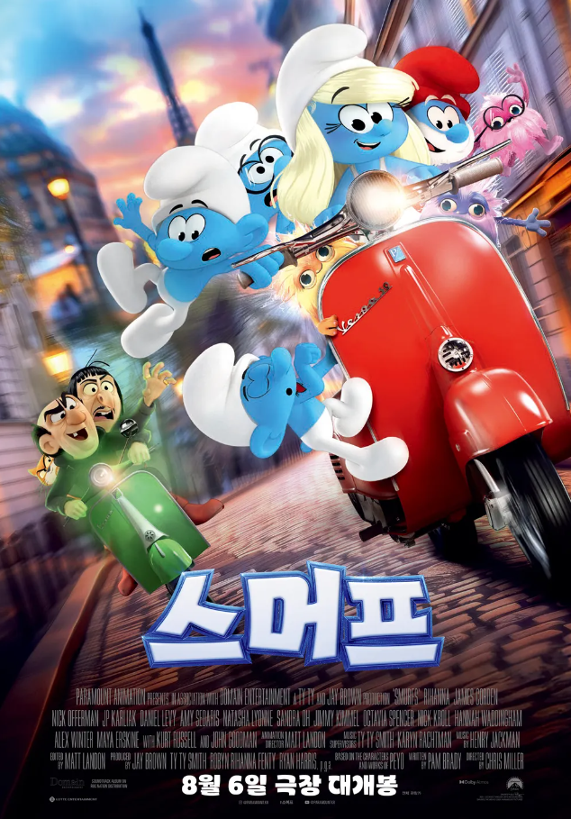 - 2025년 8월 6일 개봉한 〈스머프〉는 전통적인 블루 애니메이션 프랜차이즈에 최신 기술과 뮤지컬 요소를 접목시킨 뮤지컬 가족 영화입니다. 평화로운 스머프 마을을 배경으로, 파파 스머프가 악당 가르가멜과 라자멜에게 납치되는 사건이 발생합니다. 스머페트(리한나)와 여러 친구들은 파파 스머프를 구하기 위해 인간 세계로 모험을 떠나며, 성장과 용기, 우정의 이야기가 유쾌하면서도 감동적으로 그려집니다.